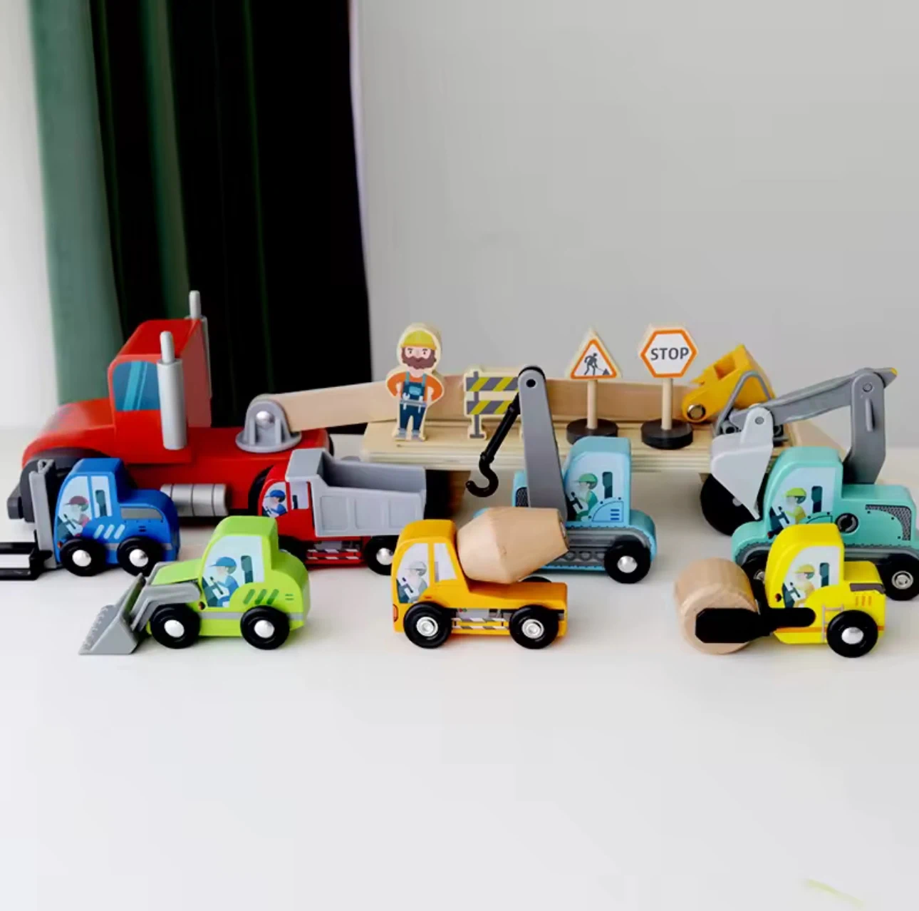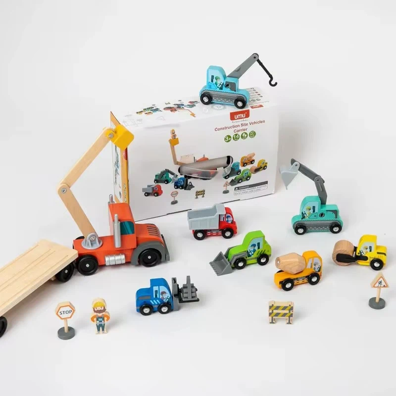 תנו לילדכם להפוך למנהלי עבודה בכבישים עם משאית עבודה ומכוניות מעץ, משחק מלא חוויות הכולל: