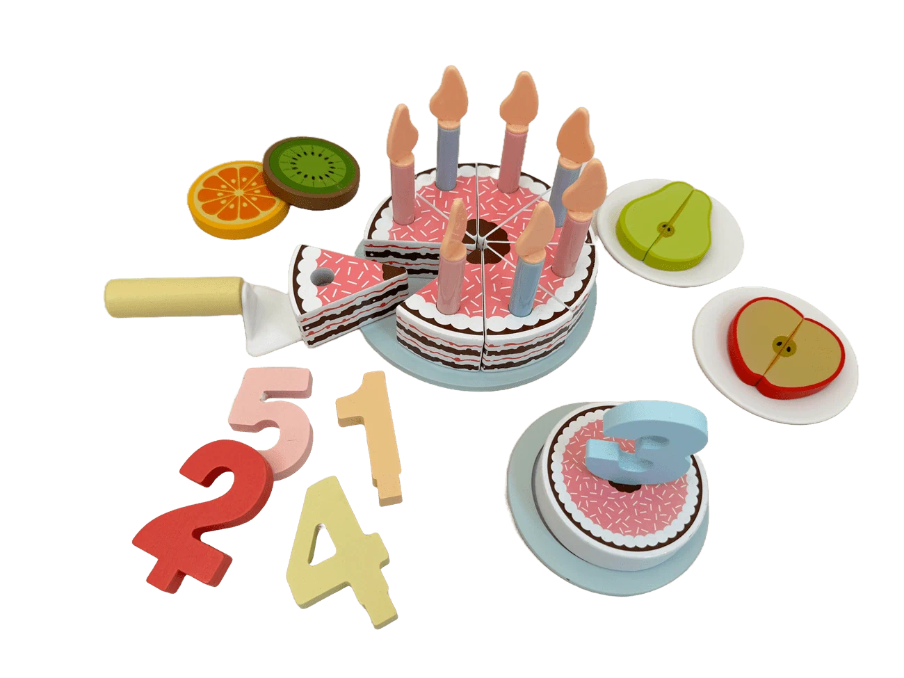 🍇 אביזרים מושלמים לחגיגה- 2 צלחות, פירות צבעוניים וכף הגשה.